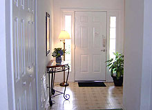 Beautiful grounds outside front and back of the villa and inner hallway with cloak cupboard (centre) |