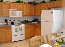Fully equipped with, microwave, fridge-freezer, dishwasher. Also there is a breakfast bar